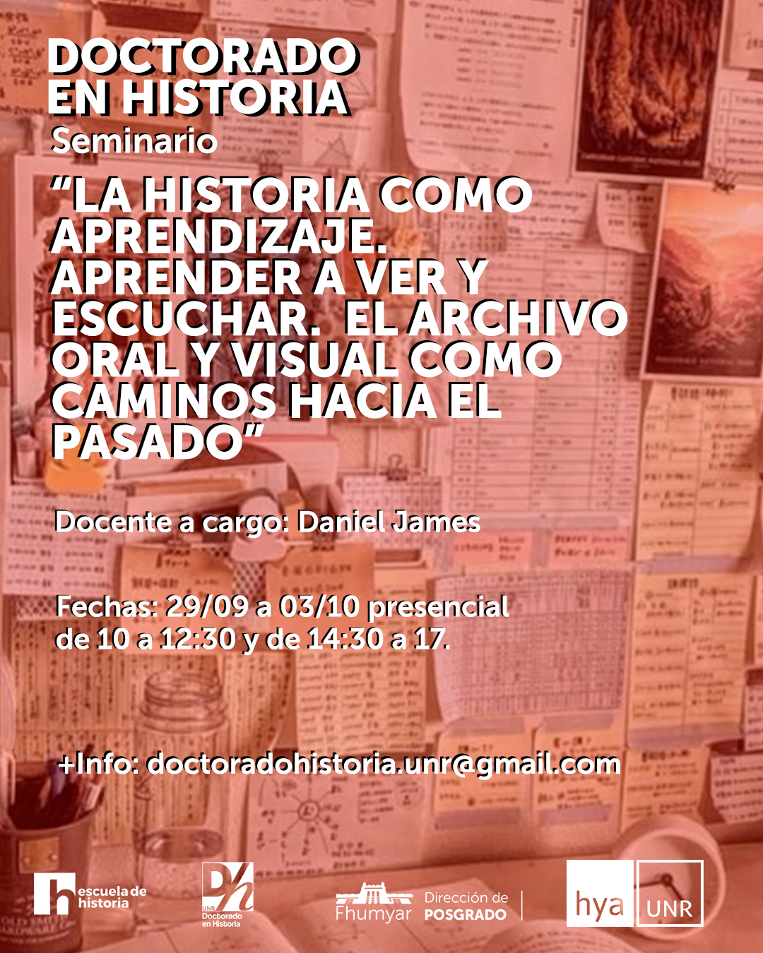 Título del seminario: “La historia como aprendizaje. Aprender a ver y escuchar. El Archivo oral y visual como caminos hacia el pasado”